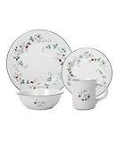 - Includes 4 each: dinner plate, salad plate, soup/cereal bowl and mug